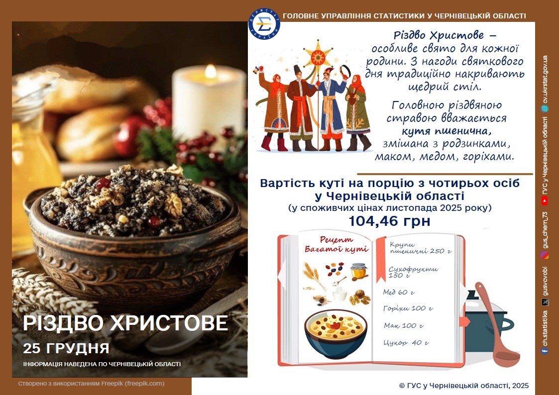 Святвечір вважається одним із найважливіших і найдуховніших днів року. Він символізує очікування народження Ісуса Христа, мир, єдність родини та вдячність за прожитий рік. Традиційно цього вечора готують 12 пісних страв, серед яких головною є кутя. Саме з неї починали трапезу. Готували кутю з обмолотої пшениці, яку товкли в макітрі. Так знімалася верхня тоненька плівка, але саме зерно не пошкоджувалося. Обов’язковими інгредієнтами вважалися: мед, мак та горіхи. Зерно означало для наших пращурів вічне життя, багатство, достаток. А мед був символом Божого слова, чистоти, християнської віри. Також до куті обов’язково додавали мак – символ невинно пролитої крові, мучеництва.
